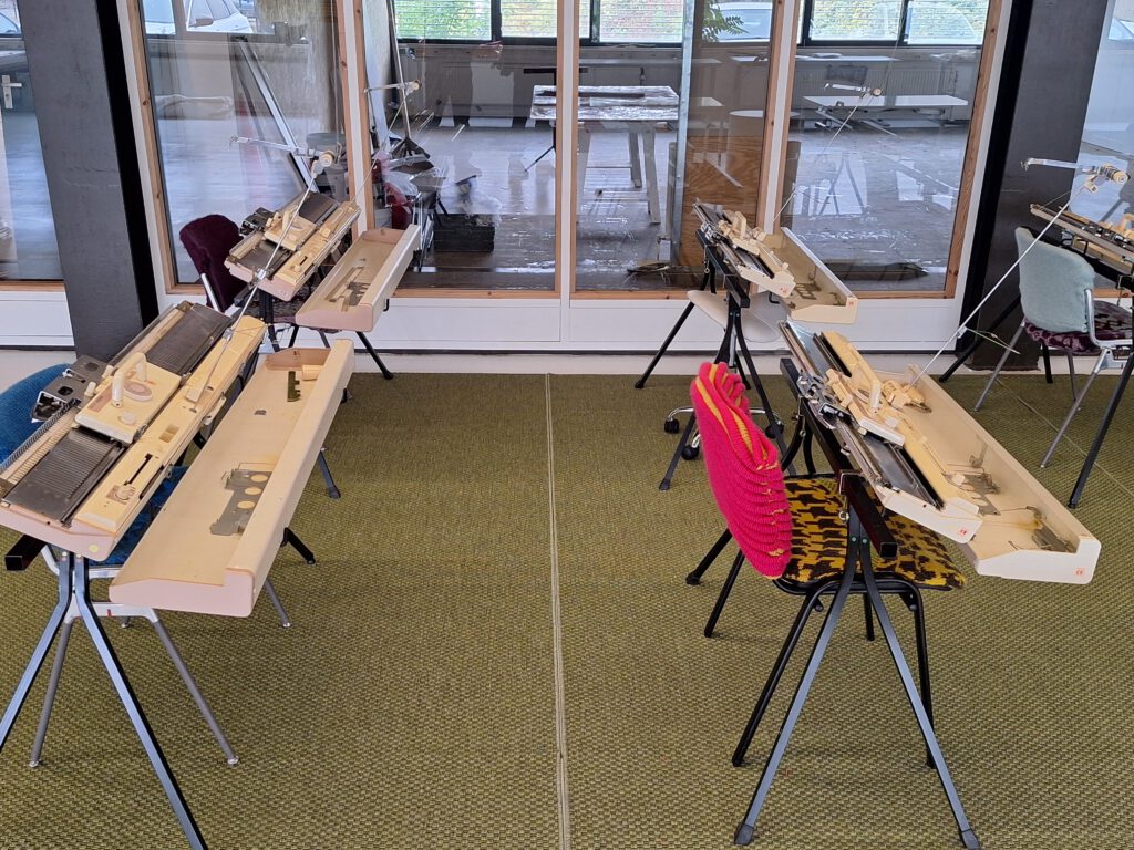 Nadat we dat hebben onderzocht vertalen we onze opgedane kennis middels het programmeren van een computergestuurde breimachine, welke hier staat