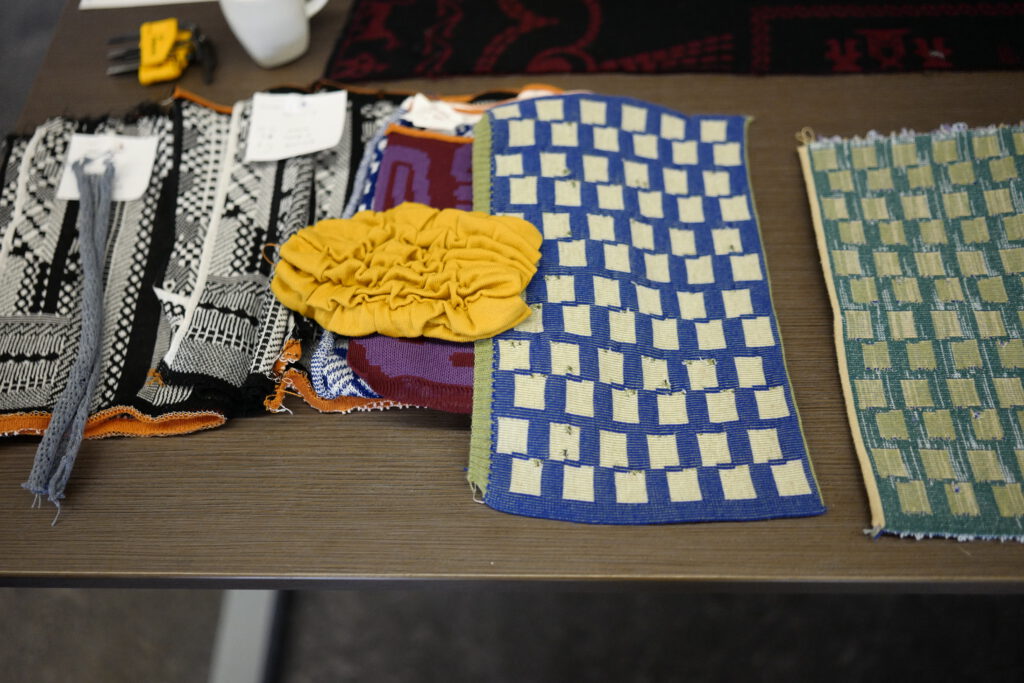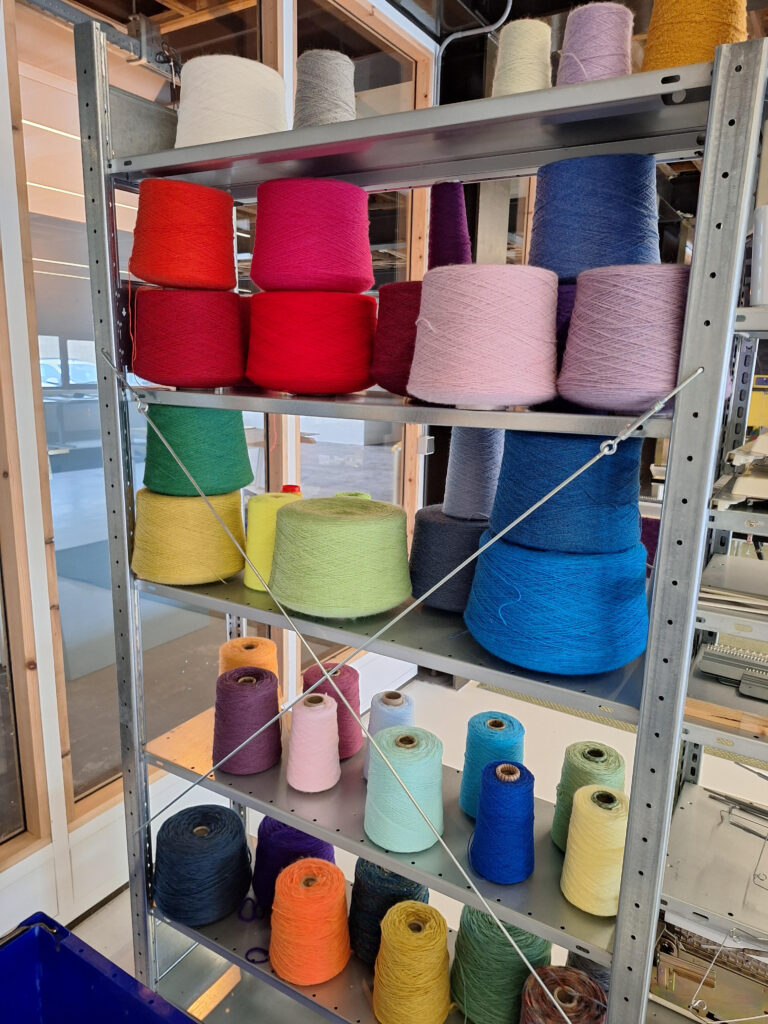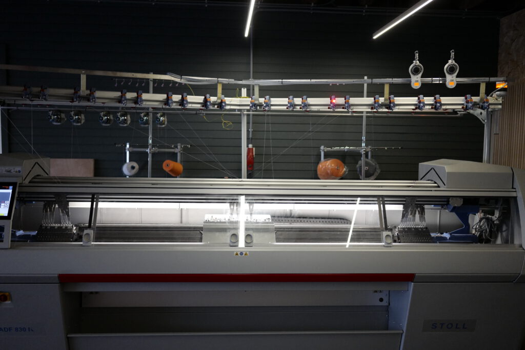 Hier gaan we testen met de garens hoe we ze kunnen verwerken. Vaak eerst met handmatige breimachines. Hier leren we veel over de eigenschappen van het garen. Bij welke spanning krijgen we een mooi resultaat. Is de spanning te groot, kan het garen afbreken, is de spanning te weinig krijg je een veel lossere structuur.